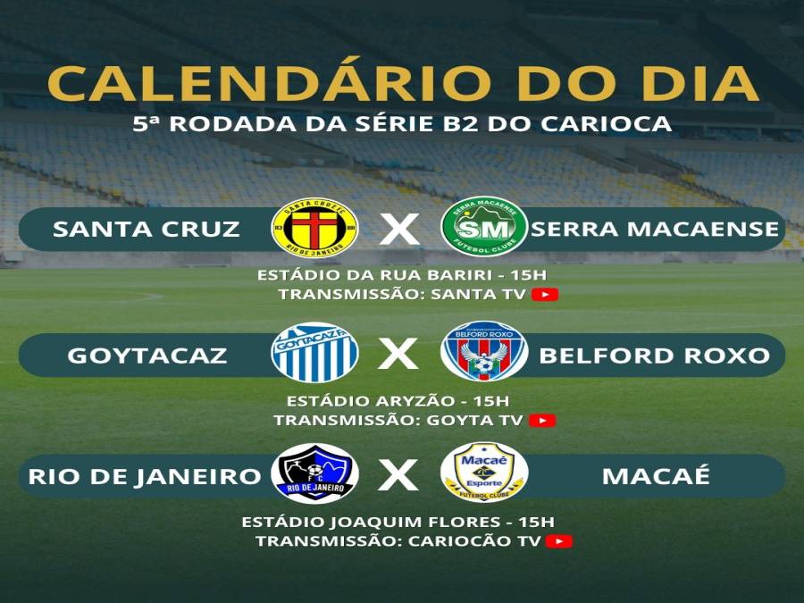 A bola rola neste domingo para três jogos da 5ª rodada da Série B2 do Campeonato Carioca.