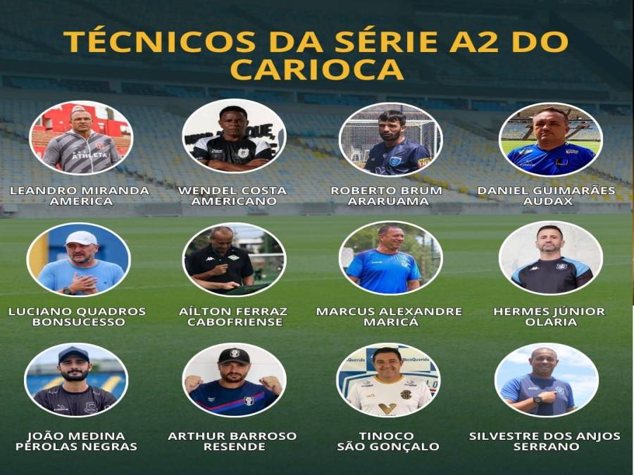 Os clubes que disputarão a Série A2 do Campeonato Carioca já definiram seus treinadores para a temporada. Conheça os nomes: