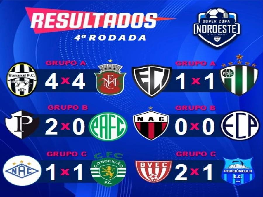 Quarta rodada da Super Copa Noroeste de Futebol, com 17 gols marcados
