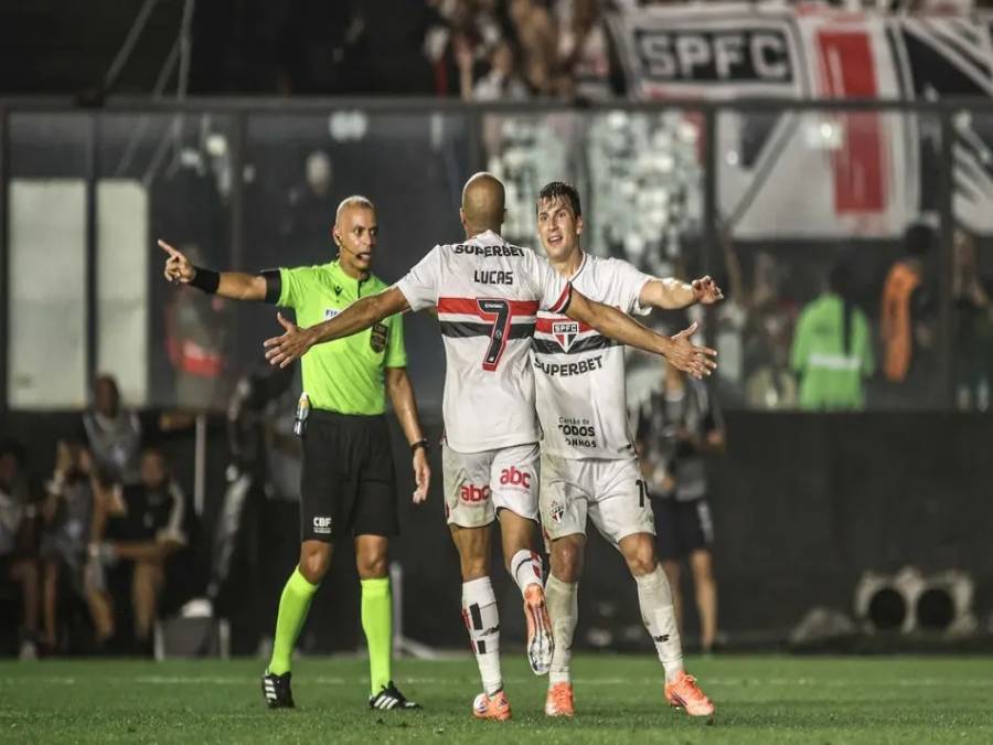 Lucas Moura assumiu a cobrança e, com tranquilidade, finalizou no canto direito para abrir o placar. Na comemoração, o atacante beijou o escudo da camisa, enquanto a torcida em São Januário protestava contra a decisão.
