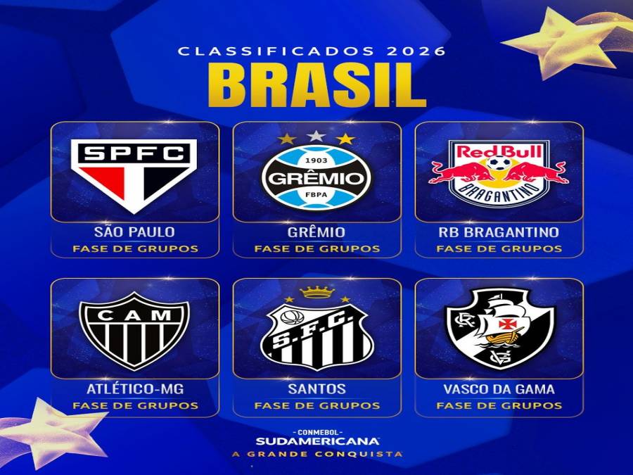Brasil: Atlético-MG, Bragantino, Grêmio, Santos, São Paulo e Vasco